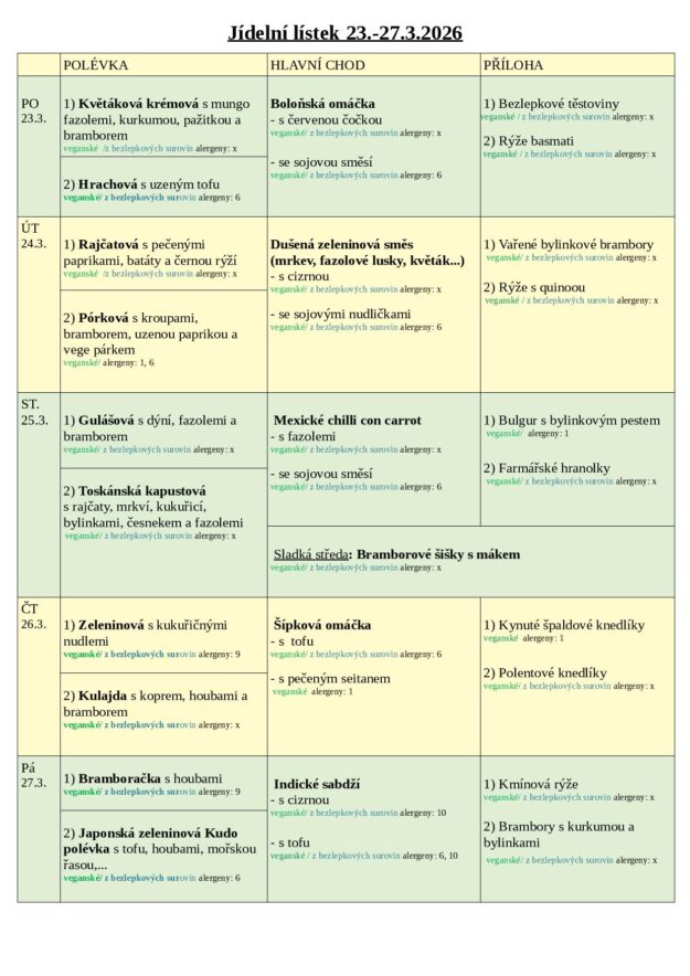 JÍDELNÍ LÍSTEK 23.-27.3. 2026
