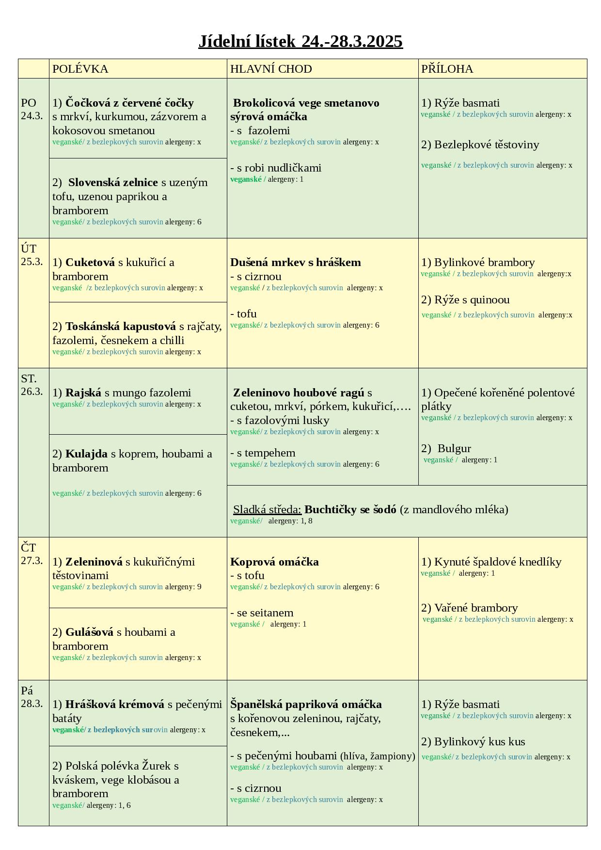 JÍDELNÍ LÍSTEK 24.-28.3. 2025
