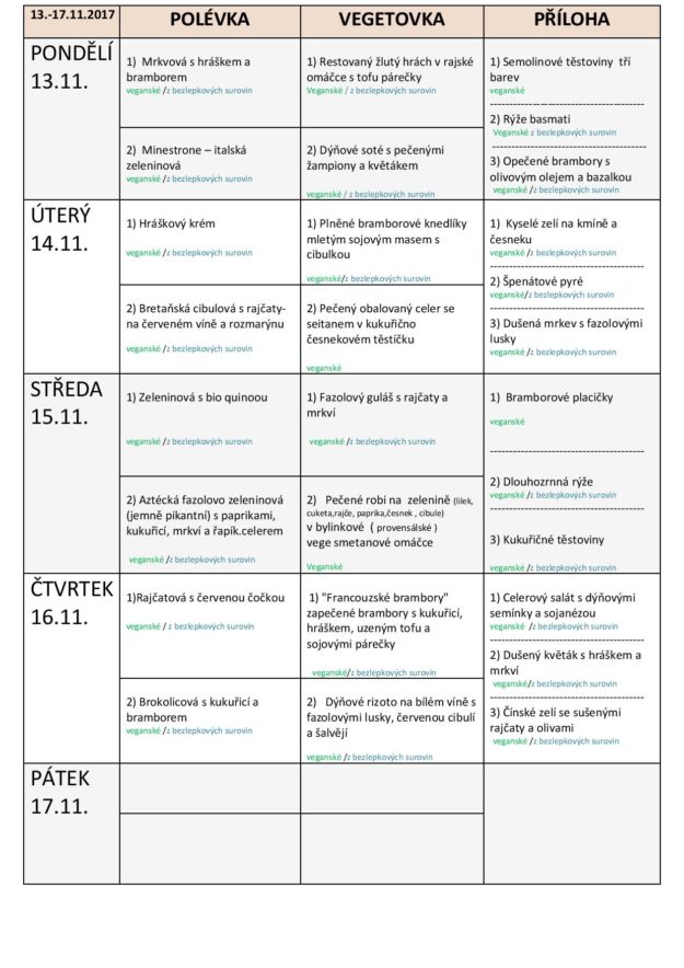 JÍDELNÍ LÍSTEK NA TÝDEN od 13. do 16.11.2017