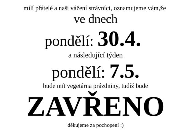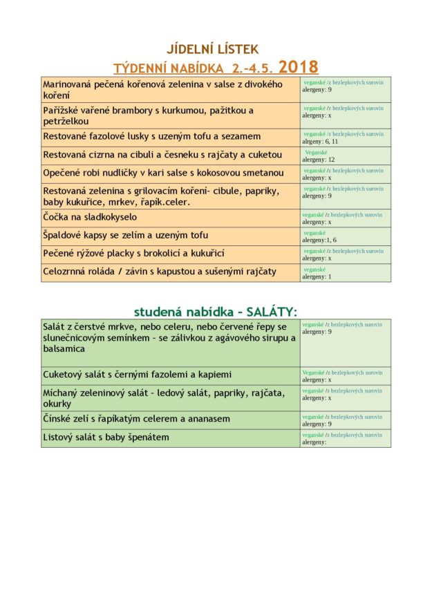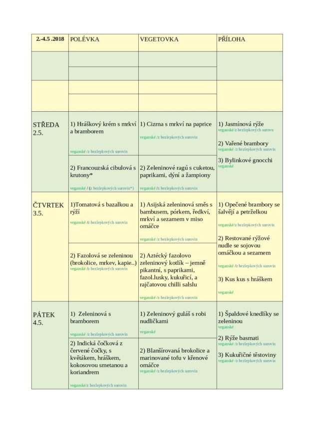 JÍDELNÍ LÍSTEK – DENNÍ NABÍDKA 2. – 4.5.2018