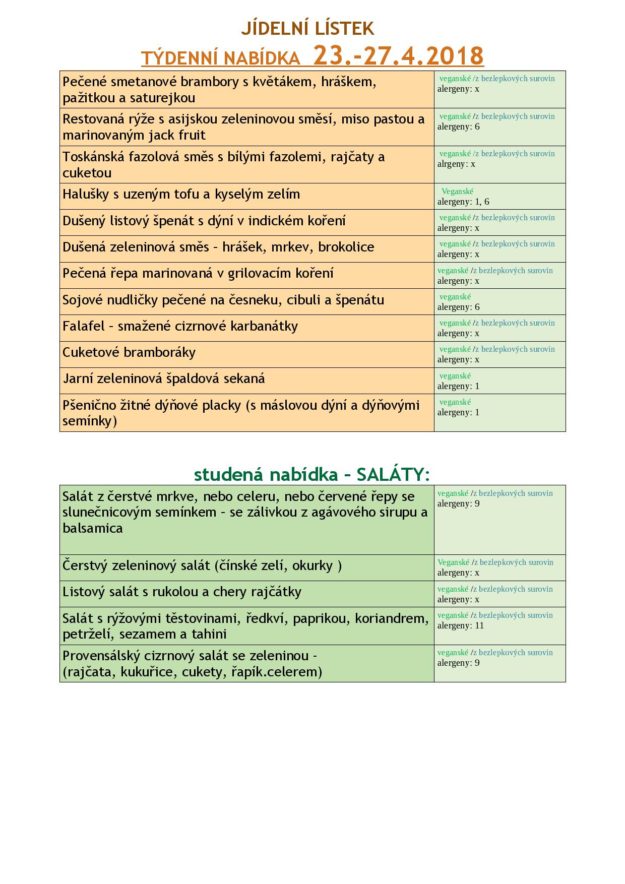 STÁLÁ TÝDENNÍ NABÍDKA 23.-27.4.2018