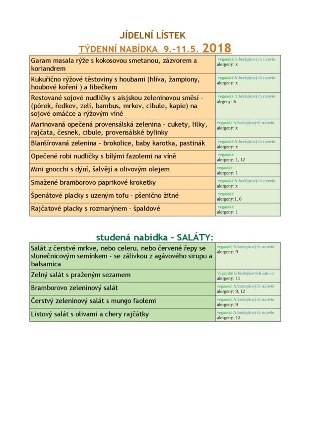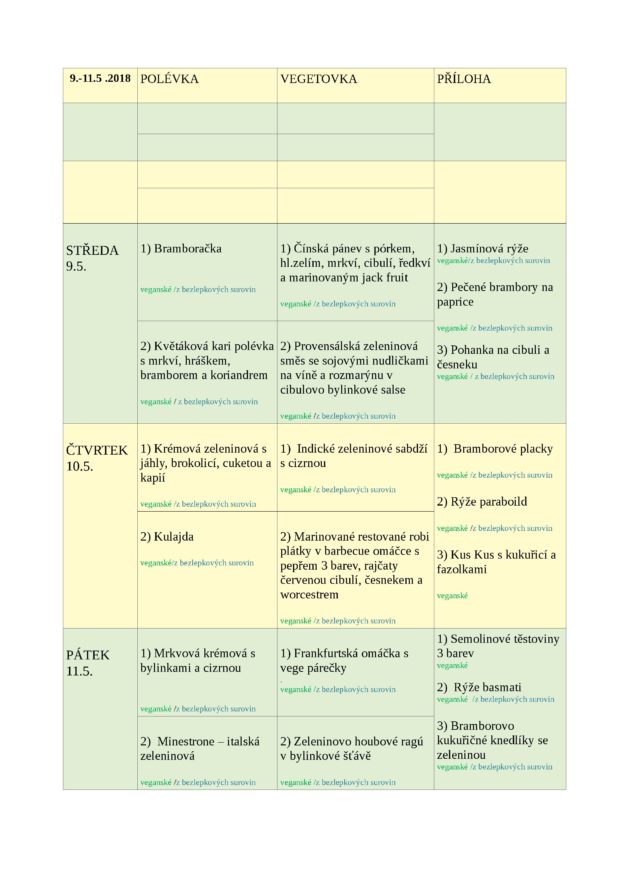 JÍDELNÍ LÍSTEK NA TÝDEN od 9. do 11.5.2018