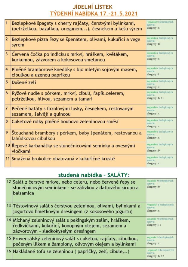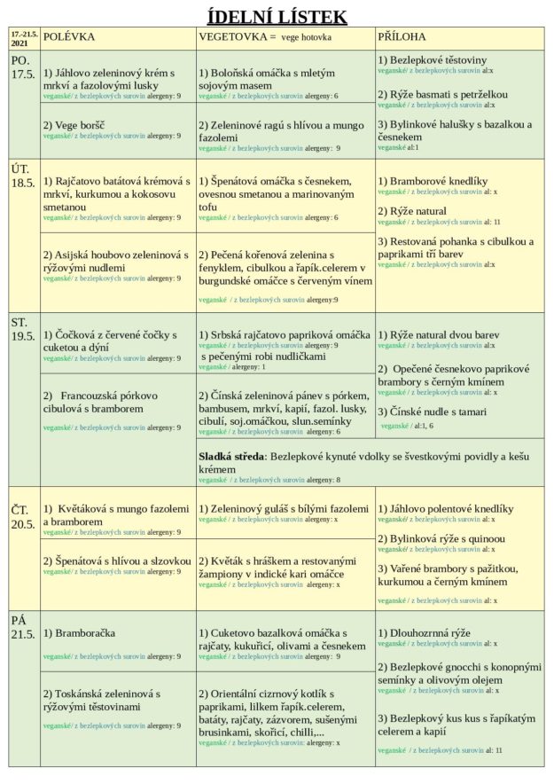 JÍDELNÍ LÍSTEK 17.-21.5. 2021