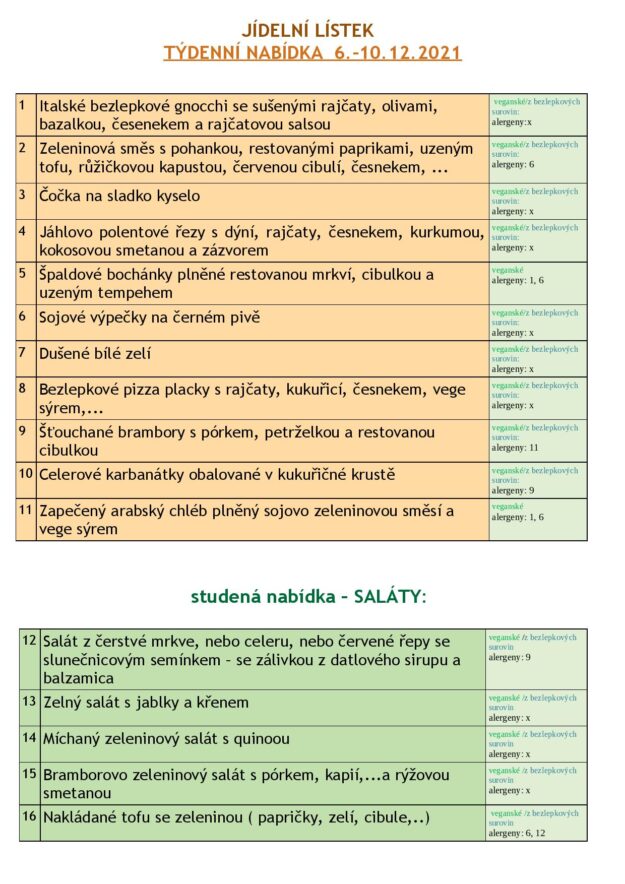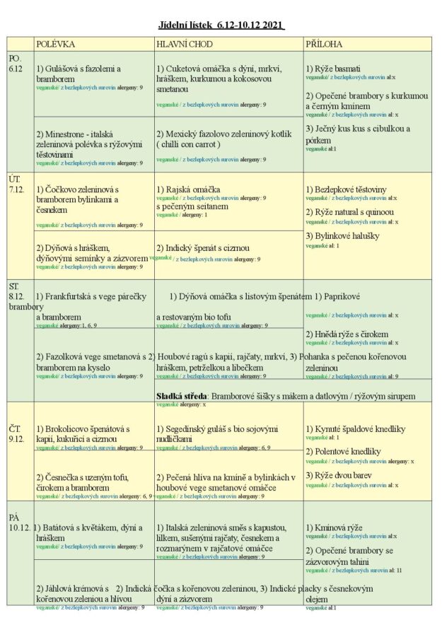 JÍDELNÍ LÍSTEK 6.-10.12. 2021