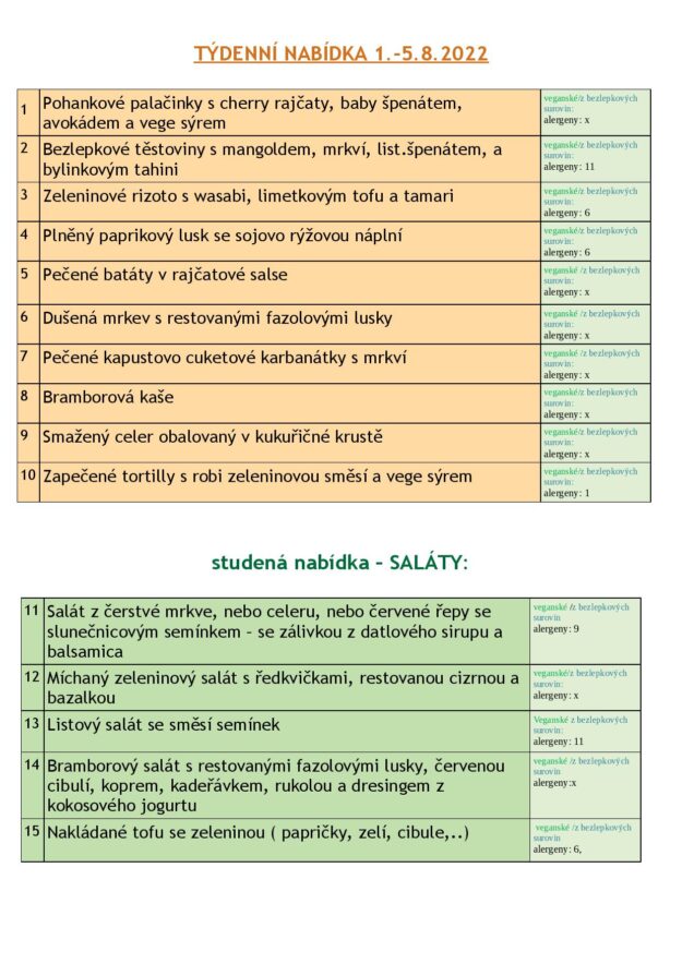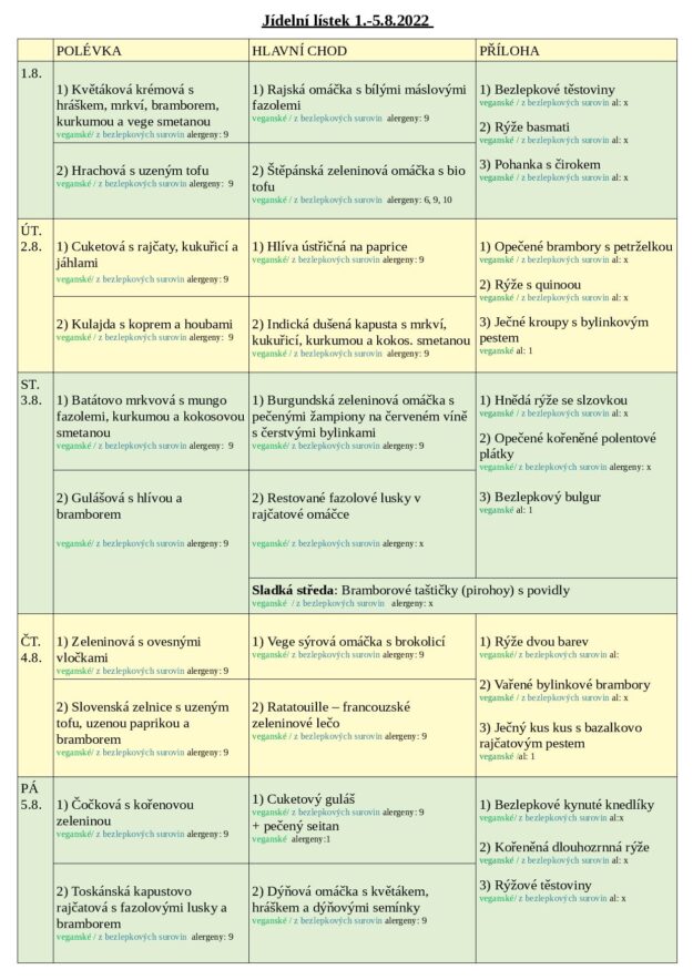 JÍDELNÍ LÍSTEK 1.-5.8.2022