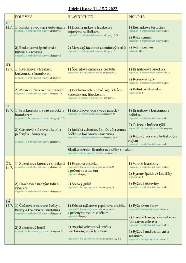 JÍDELNÍ LÍSTEK 11.-15.7. 2022