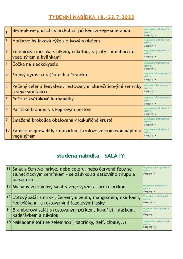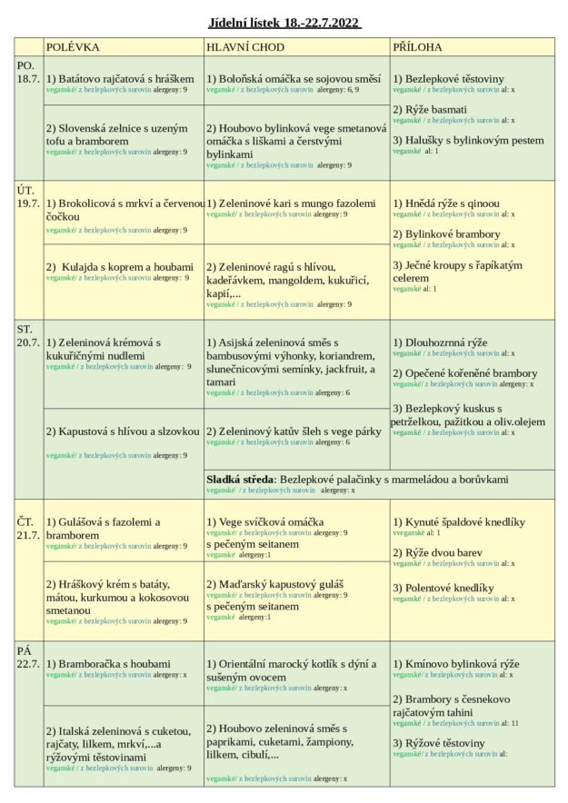 JÍDELNÍ LÍSTEK 18.-22.7. 2022