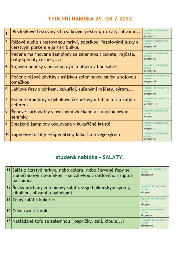 TÝDENNÍ NABÍDKA 25.-29.7. 2022