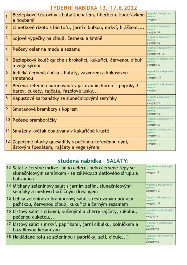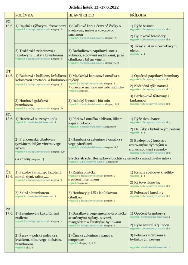 JÍDELNÍ LÍSTEK 13.-17.6. 2022