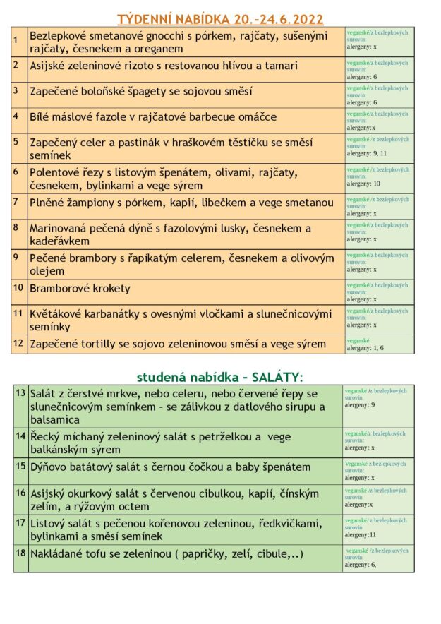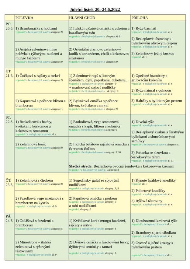 JÍDELNÍ LÍSTEK 20.-24.6. 2022