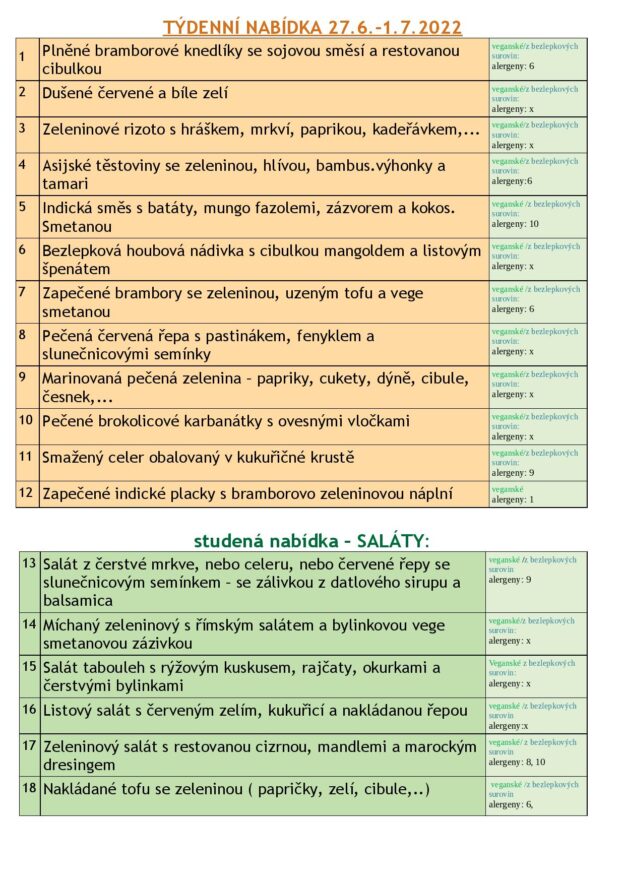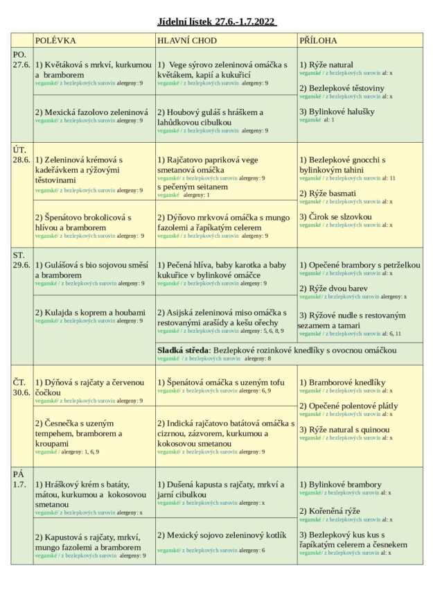 JÍDELNÍ LÍSTEK 27.6.-1.7. 2022