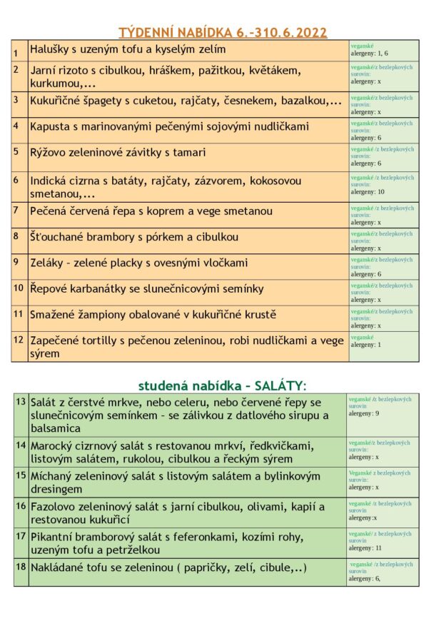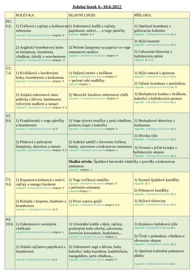 JÍDELNÍ LÍSTEK 6.-10.6. 2022