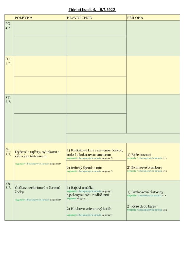 JÍDELNÍ LÍSTEK 7.-8.7.2022
