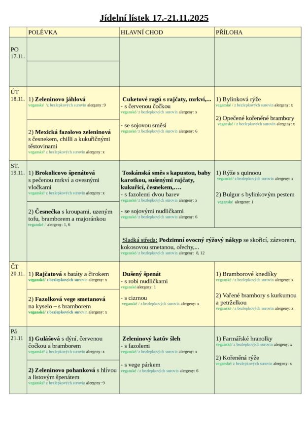 JÍDELNÍ LÍSTEK 17.-21.11. 2025