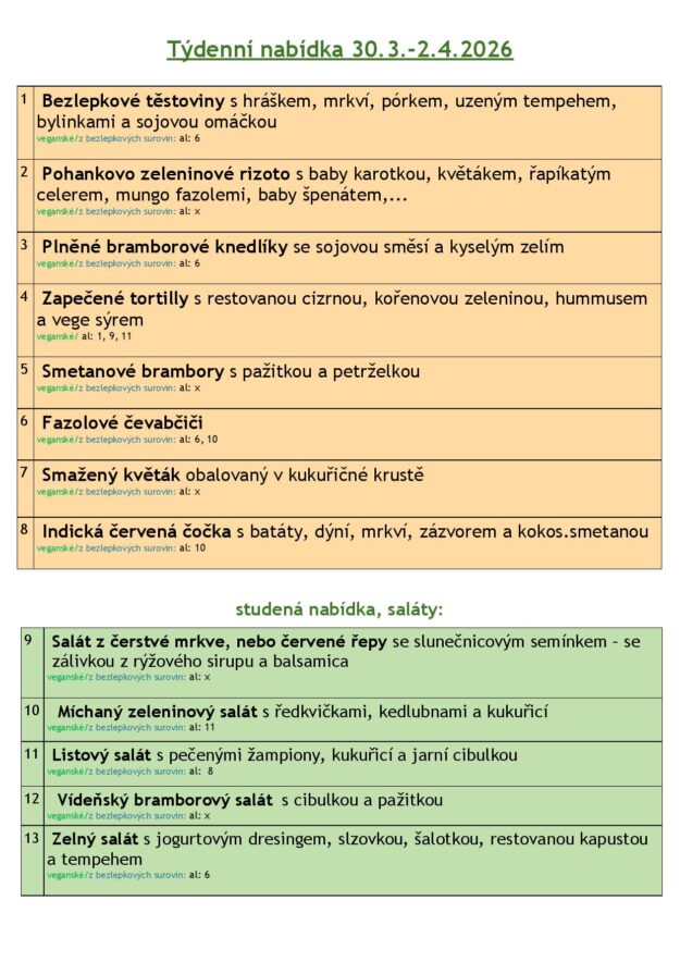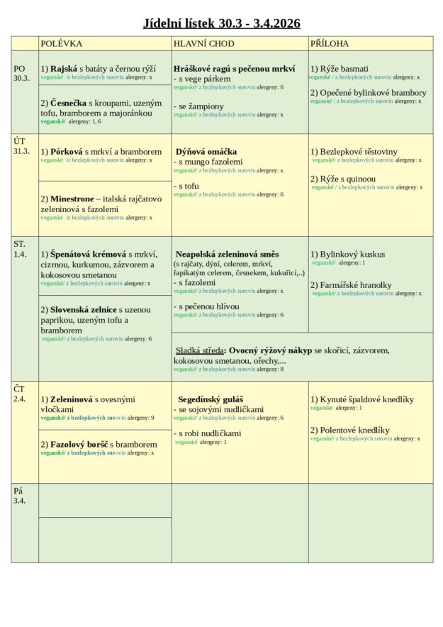 JÍDELNÍ LÍSTEK 30.3.-3.4. 2026