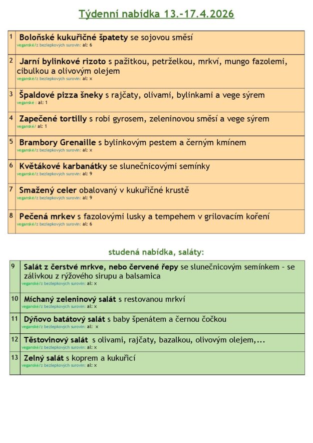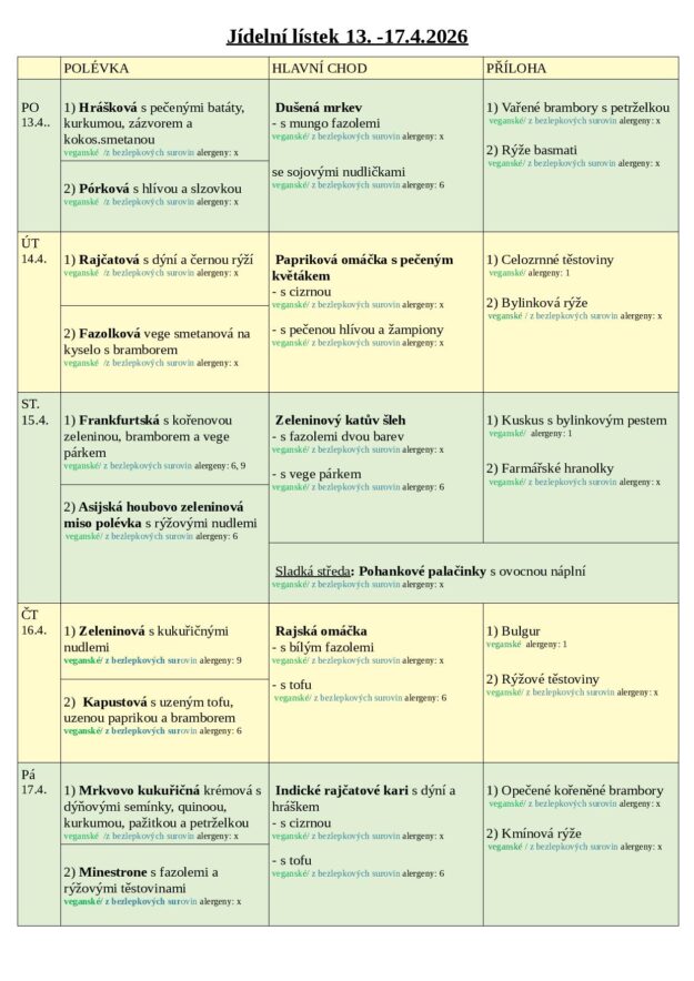 JÍDELNÍ LÍSTEK 13.-17.4. 2026