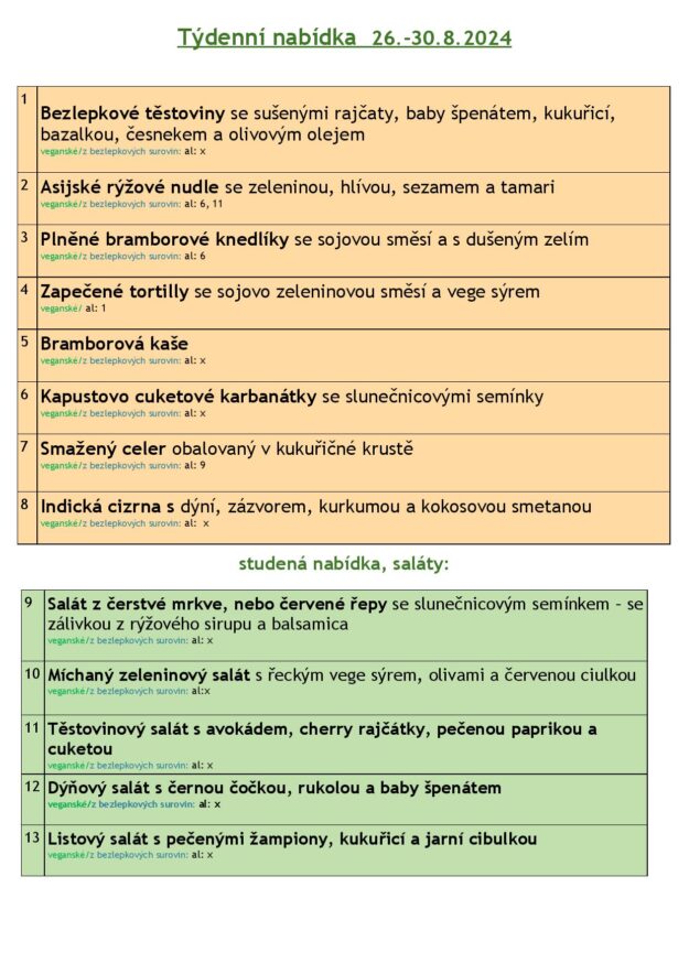 JÍDELNÍ LÍSTEK 26.-30.8. 2024