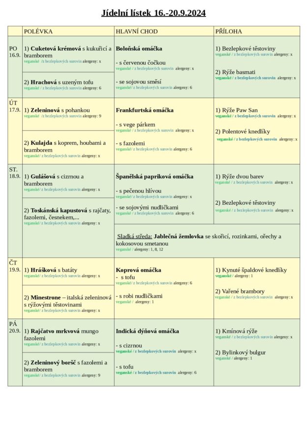 JÍDELNÍ LÍSTEK 16.-20.9. 2024