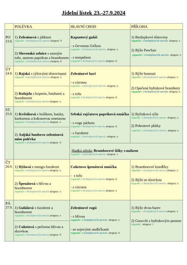 JÍDELNÍ LÍSTEK 23.-27.9. 2024