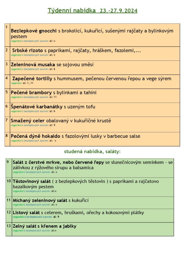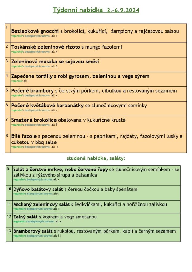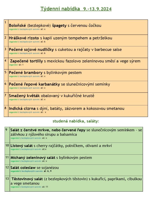 JÍDELNÍ LÍSTEK 9.-13.9. 2024