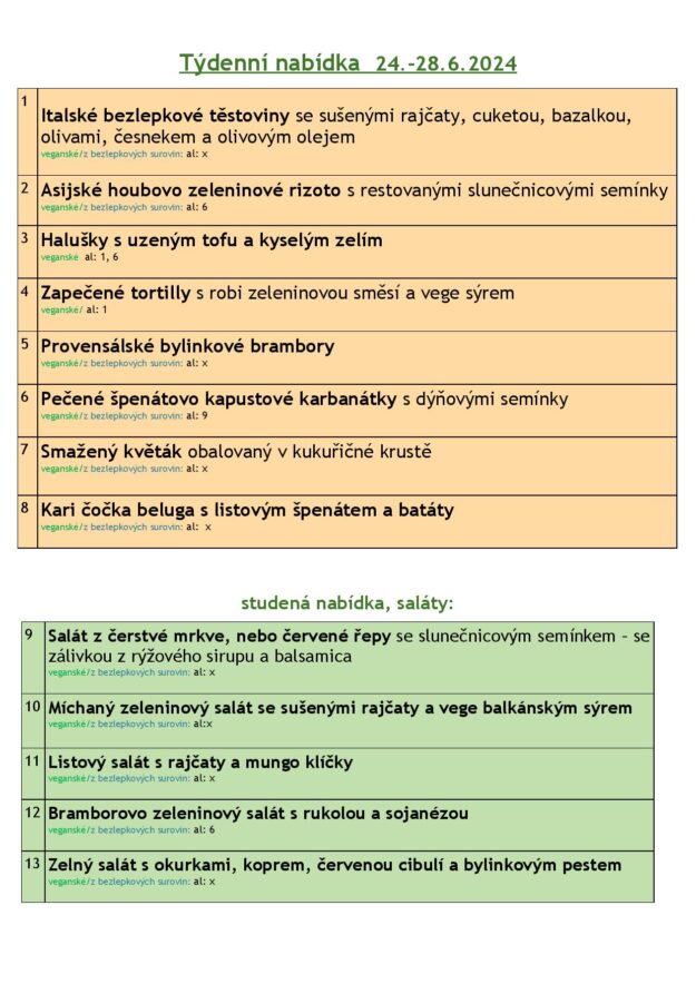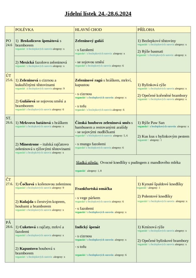 JÍDELNÍ LÍSTEK 24.-28.6. 2024