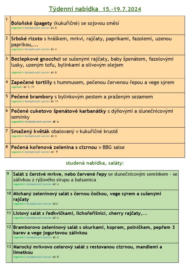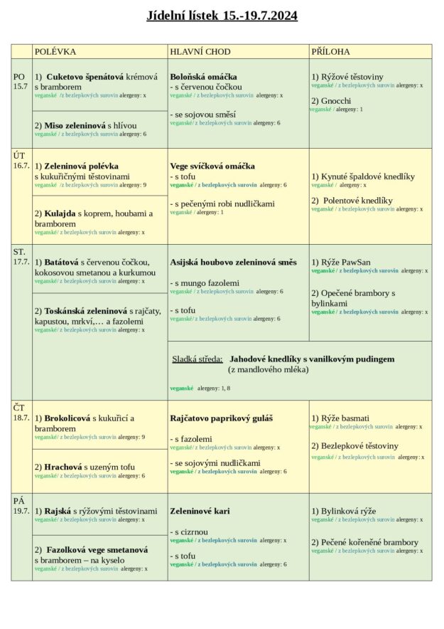 JÍDELNÍ LÍSTEK 15.-19.7. 2024