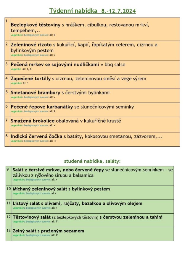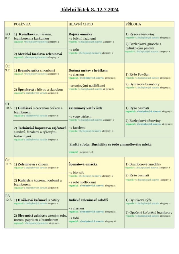 JÍDELNÍ LÍSTEK 8.-12.7. 2024
