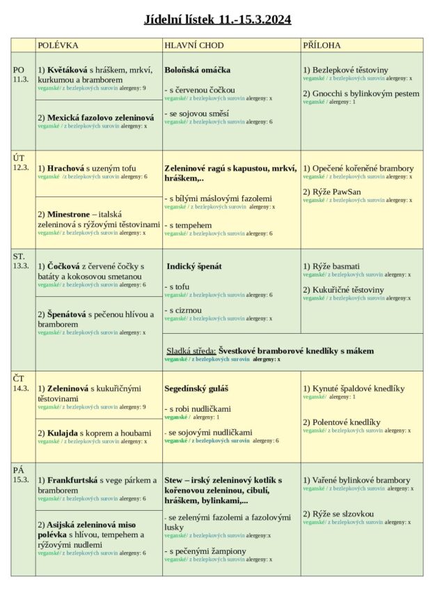JÍDELNÍ LÍSTEK 11.-15.3. 2024