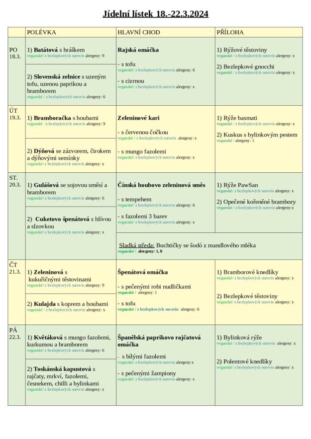 JÍDELNÍ LÍSTEK 18.-22.3. 2024