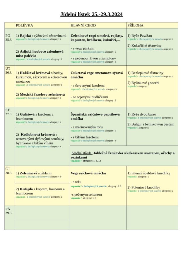 JÍDELNÍ LÍSTEK 25.-29.3. 2024