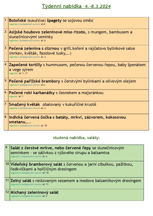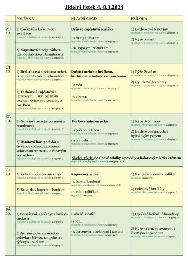 JÍDELNÍ LÍSTEK 4.-8.3. 2024