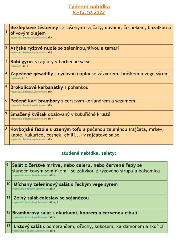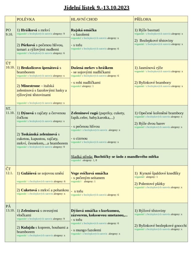 JÍDELNÍ LÍSTEK 9.-13.10 2023