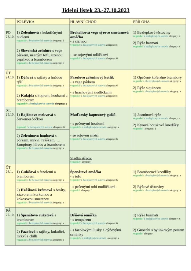 JÍDELNÍ LÍSTEK 23.-27.10 2023