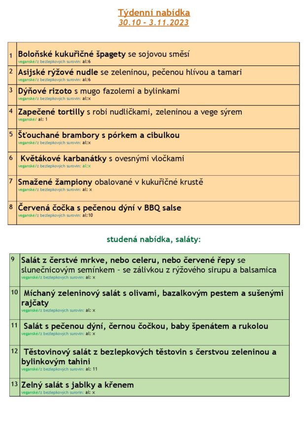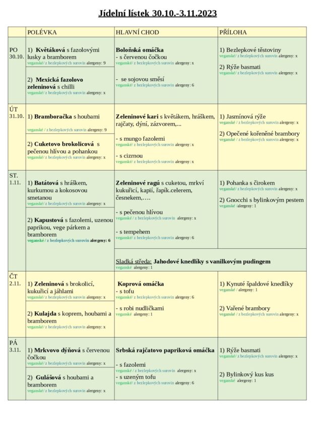JÍDELNÍ LÍSTEK 30.10.- 3.11.2023