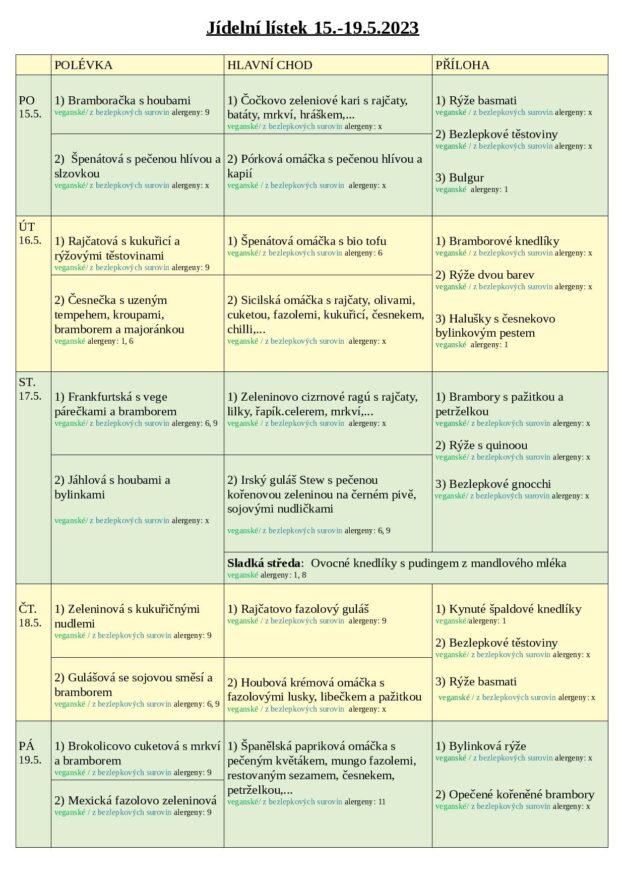 JÍDELNÍ LÍSTEK 15.-19.5. 2023