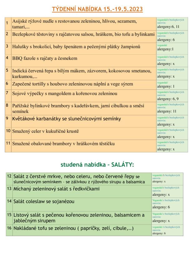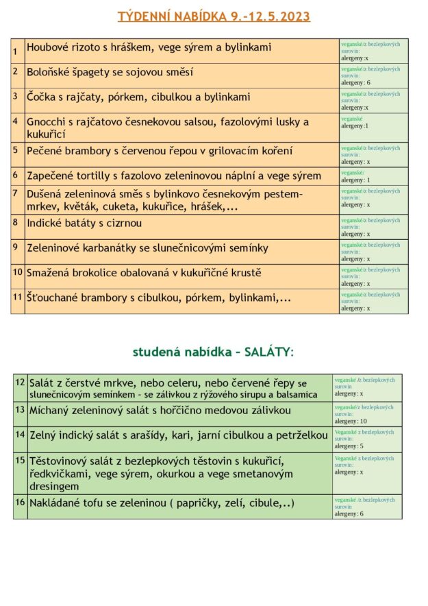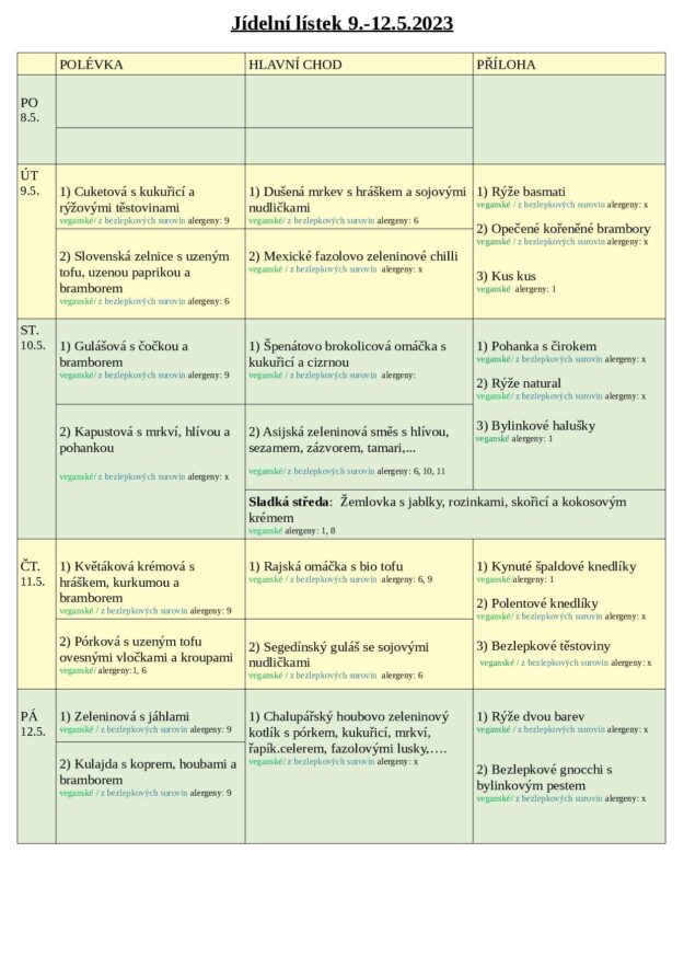 JÍDELNÍ LÍSTEK 9.-12.5. 2023