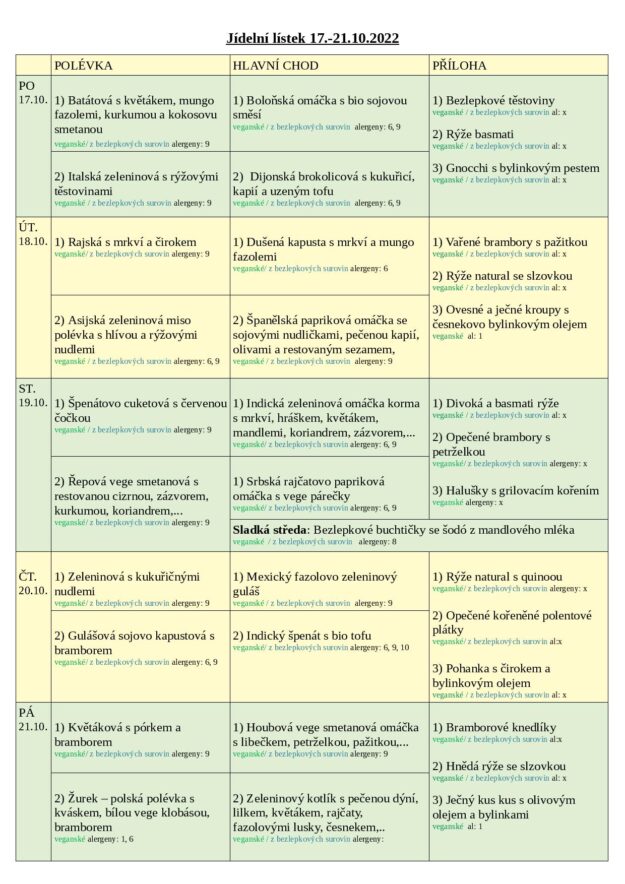 JÍDELNÍ LÍSTEK 17.-21.10. 2022