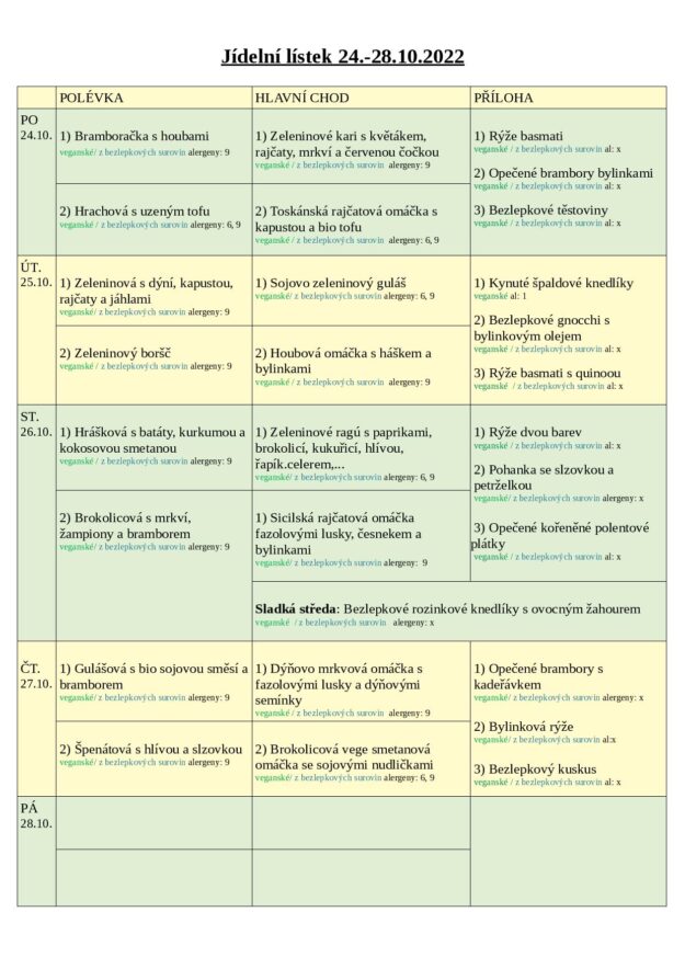 TÝDENNÍ NABÍDKA 24.-28.10. 2022