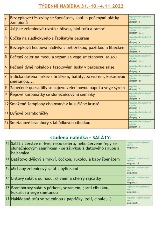TÝDENNÍ NABÍDKA 31.10.-4.11. 2022