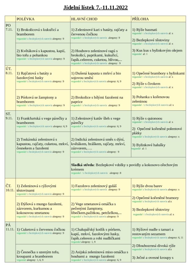 JÍDELNÍ LÍSTEK 7.-11.11. 2022