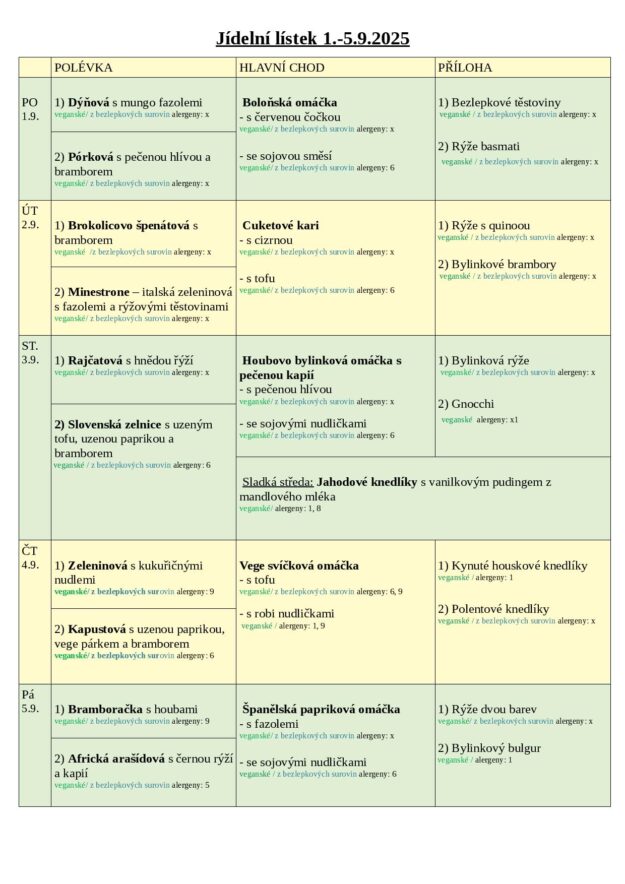 JÍDELNÍ LÍSTEK 1.-5.9. 2025
