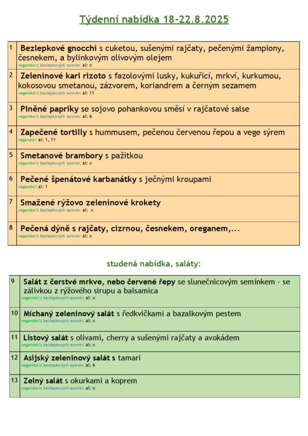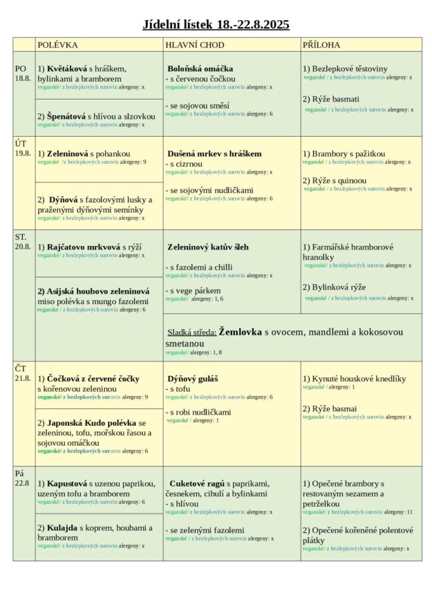 JÍDELNÍ LÍSTEK 18.8.-22.8. 2025