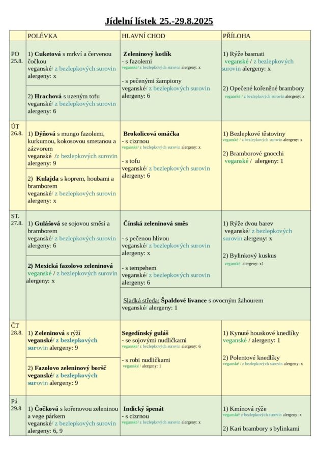 JÍDELNÍ LÍSTEK 25.-29.8.2025