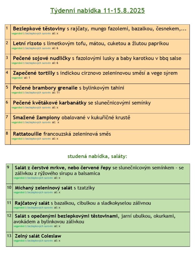 JÍDELNÍ LÍSTEK 11.-15.8. 2025