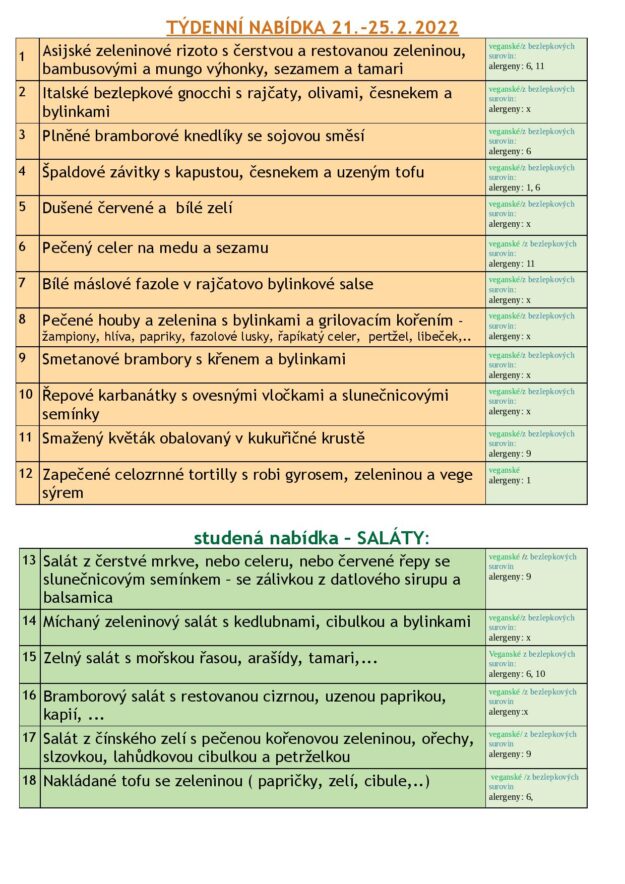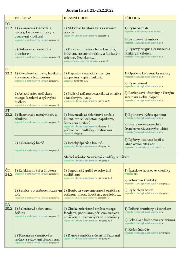 JÍDELNÍ LÍSTEK 21.-25.2. 2022
