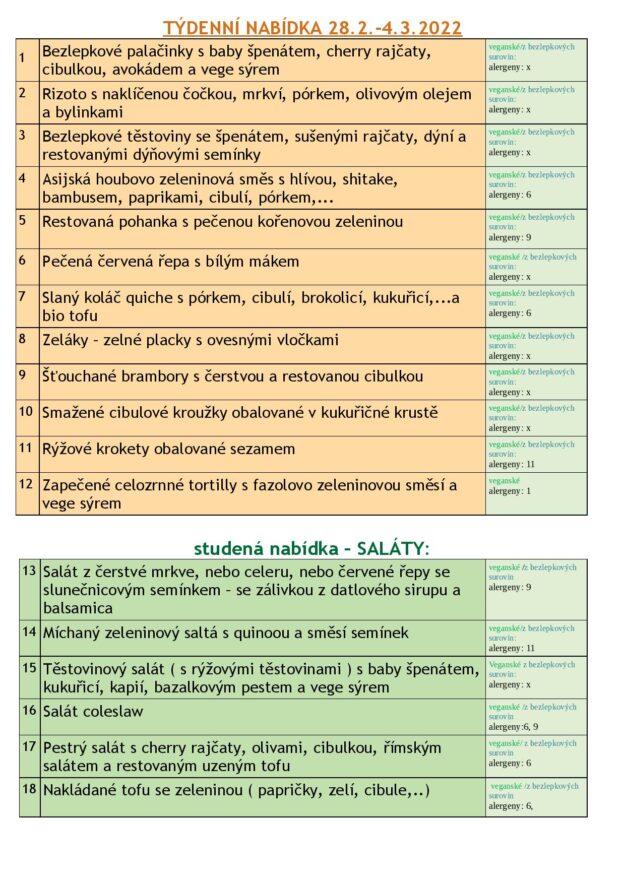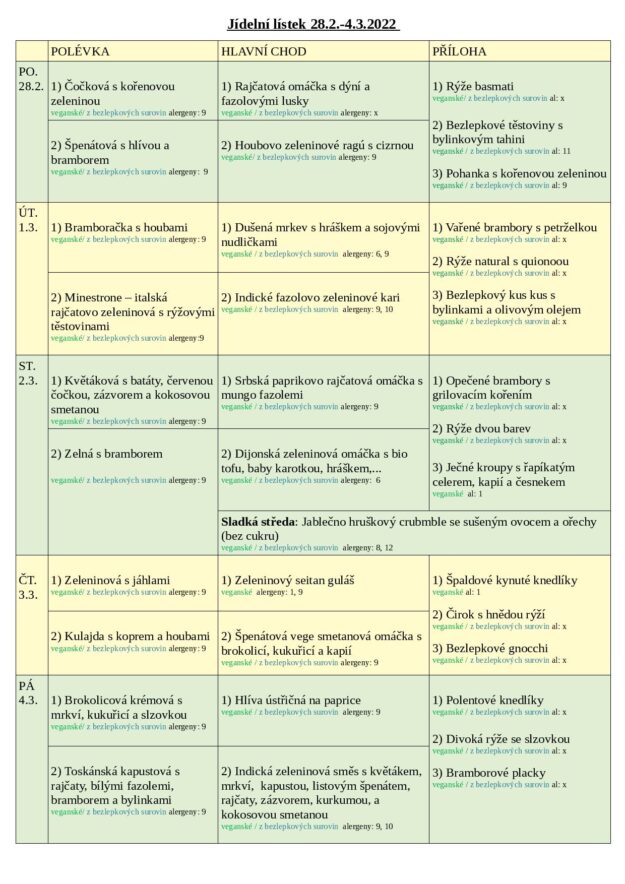 JÍDELNÍ LÍSTEK 28.2.-4.3. 2022