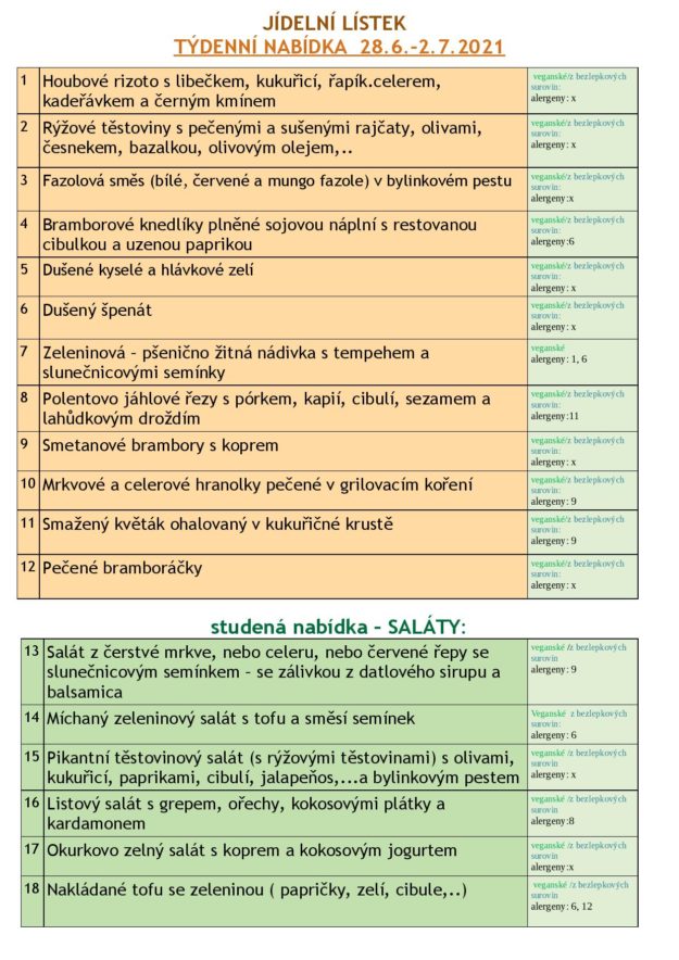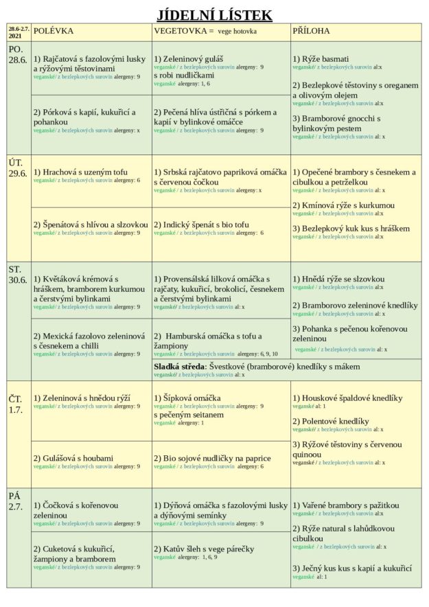 JÍDELNÍ LÍSTEK 28.6.-2.7. 2021
