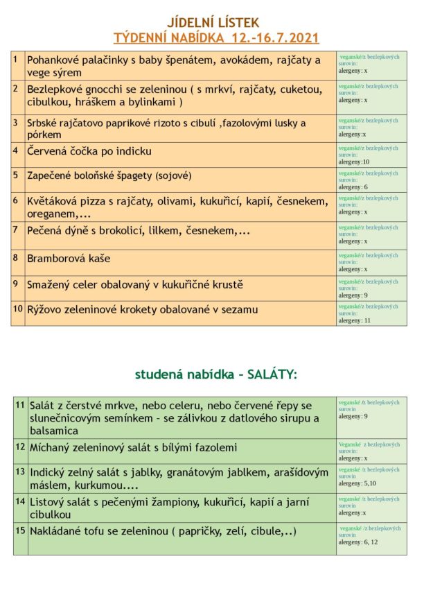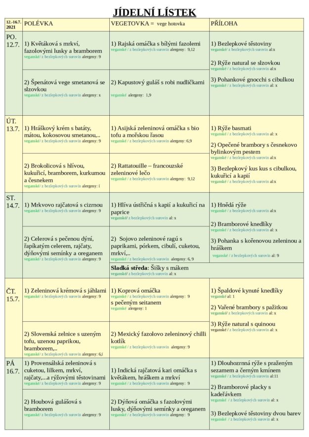 JÍDELNÍ LÍSTEK 12.-16.7. 2021