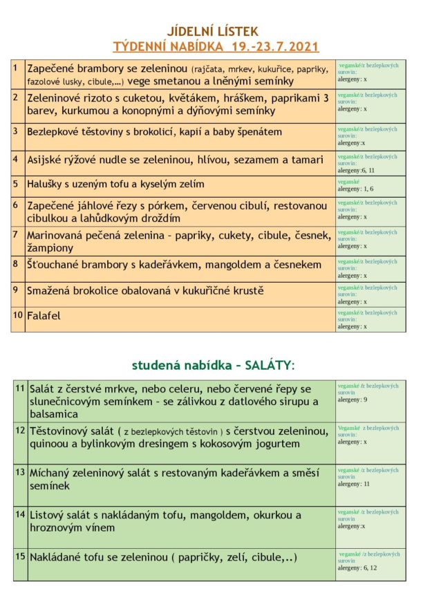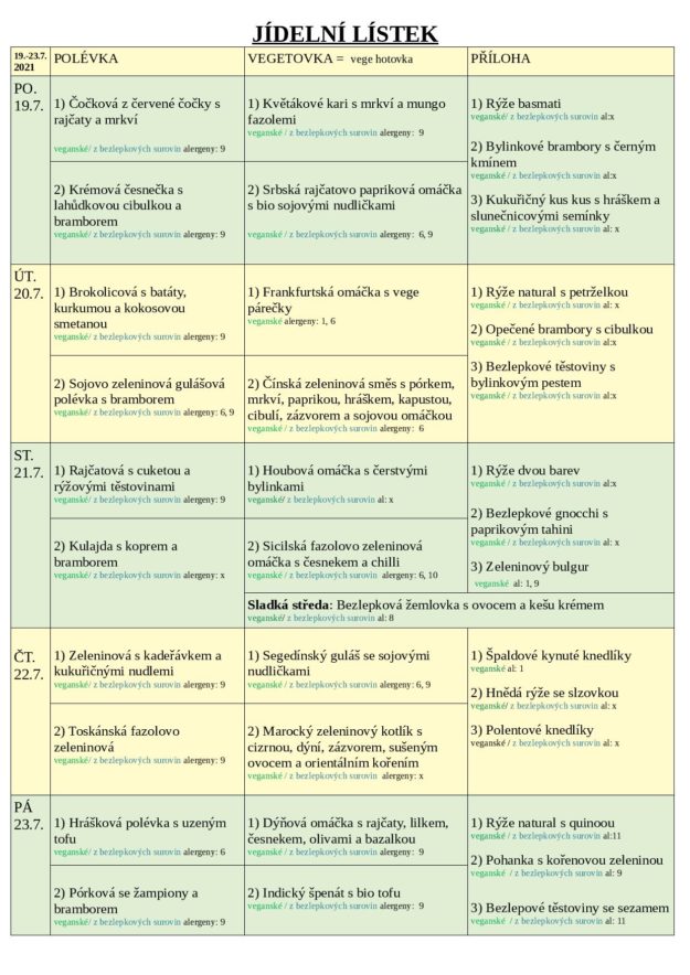 JÍDELNÍ LÍSTEK 19.-23.7. 2021