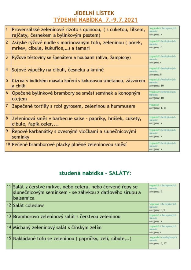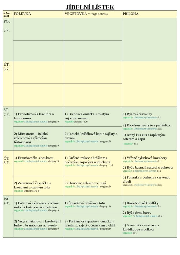 JÍDELNÍ LÍSTEK 5.-9.7. 2021